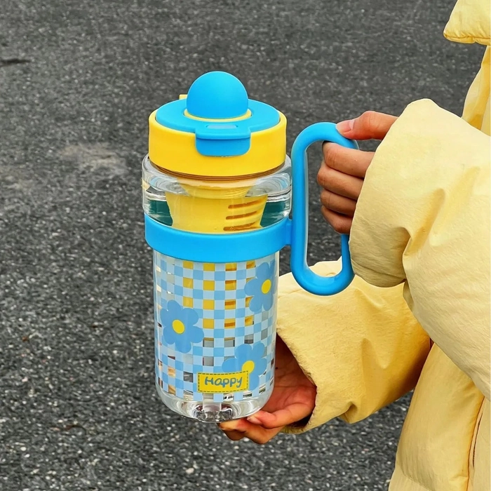 Large 1200ml Kawaii Water Bottle with Straw & Handle – BPA Free Plastic Tumbler with Filter for Tea, Juice, Coffee, Matcha.
